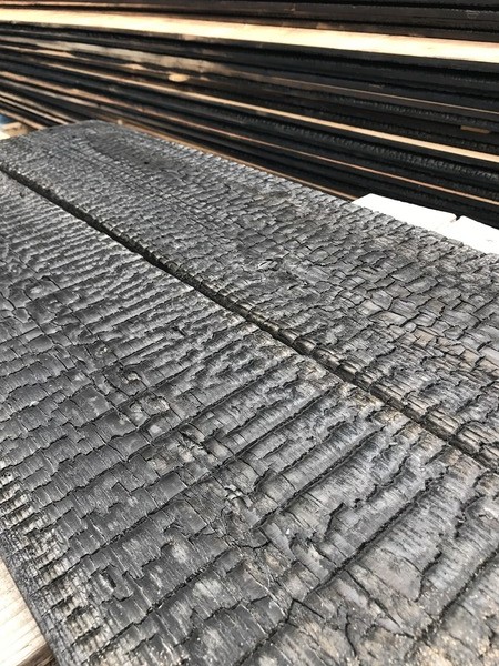 焼杉材のカットサンプルを製作中です。